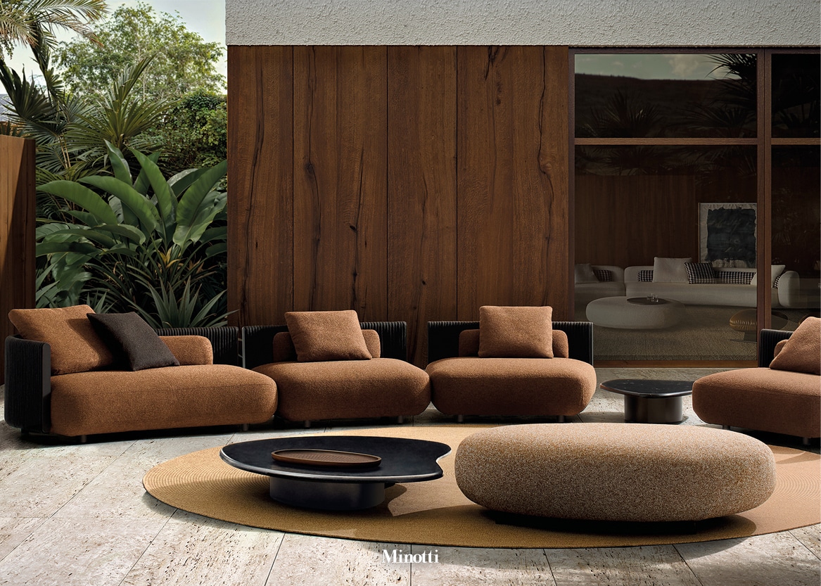 Dieses Jahr sind sinnliche Outdoor-Textilien und nachhaltig gewonnenes Teakholz besonders angesagt. Mit sinnlichen Textilien wird die Aussenraum-Gestaltung in allen Dimensionen noch fühl- und erlebbarer: am Boden als Teppich, zur Gestaltung als Paravent oder Vorhang oder als Kissen, Decken und Bezüge. Es warten weiche, UV-beständige Fasern, die Luxus und Natur zugleich zelebrieren. Pflegeleicht und elegant, veredeln sie Terrassen, Balkone und Gärten mit einer neuen Selbstverständlichkeit. Und dann ist da noch ein Star: Teakholz. Es ist definitiv zurück auf dem Parkett der Highlights. Viele unserer Marken nutzen das traumhaft schöne Holz in ihren Neuheiten.